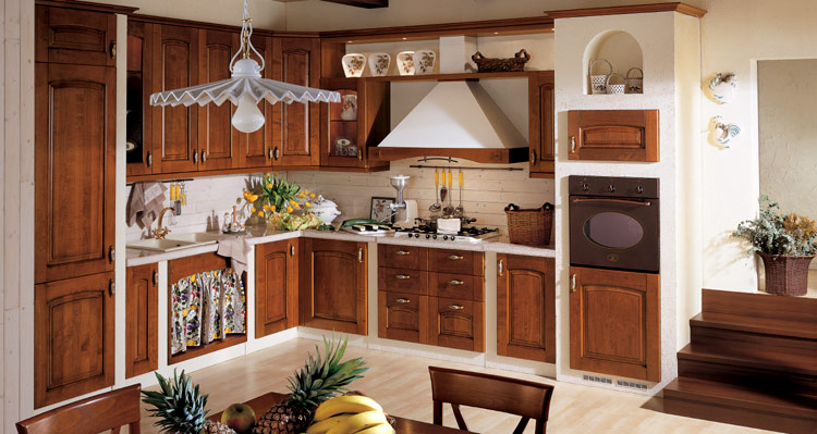 Ένα μπρονζέ (επιμεταλλωμένο) χερούλι με κεραμική διακόσμηση στολίζει τις πόρτες και συρτάρια. Αυτή η σύνθεση με βαμμένες επιφάνειες έχει γίνει ακόμη πιο πολύτιμη με νεροχύτη που κλίνει με κουρτίνα, απορροφητήρα με γαρνίρισμα συμπαγή ξύλου και ακόμη στήλη με φούρνο και κομψό ντιζαίν. |